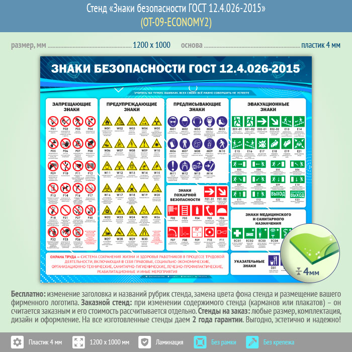 Стенд «Знаки безопасности ГОСТ 12.4.026-2015» (OT-09-ECONOMY2) в Новом Уренгое купить