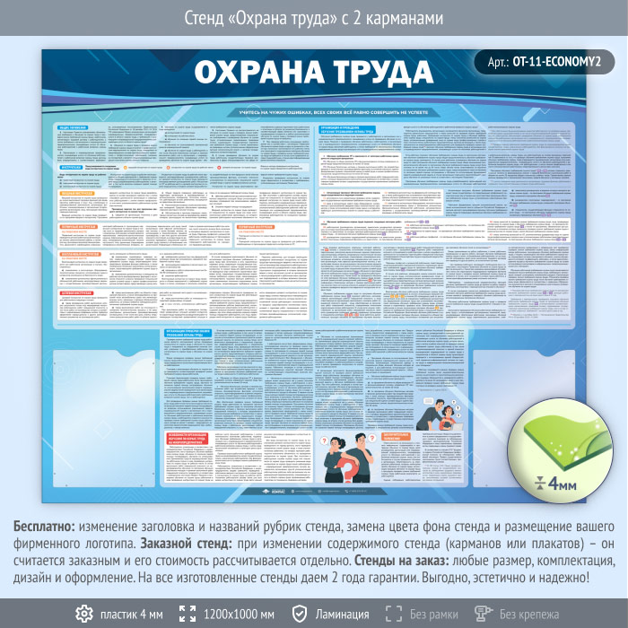 Стенд «Охрана труда» с 2 карманами (OT-11-ECONOMY2) в Новом Уренгое купить
