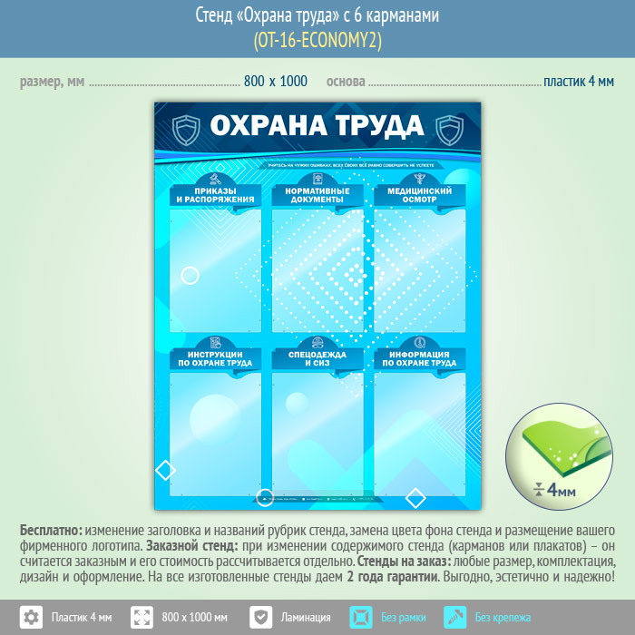 Стенд «Охрана труда» с 6 карманами (OT-16-ECONOMY2) в Новом Уренгое купить