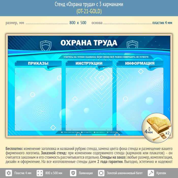 Стенд «Охрана труда» с 3 карманами (OT-21-GOLD) в Новом Уренгое купить