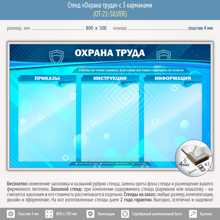 Стенд «Охрана труда» с 3 карманами (OT-21-SILVER) в Новом Уренгое купить