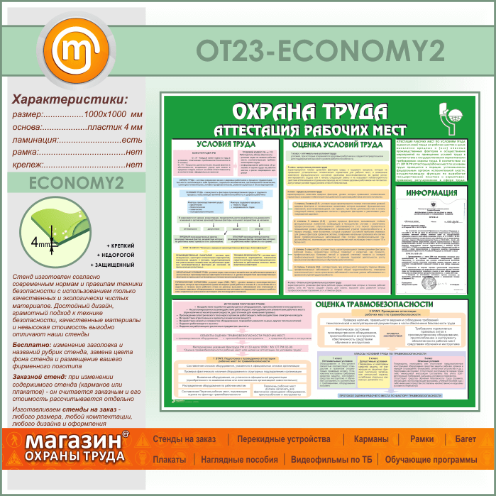 Стенд «Охрана труда. Аттестация рабочих мест» с карманом (OT-23-ECONOMY2) в Новом Уренгое купить