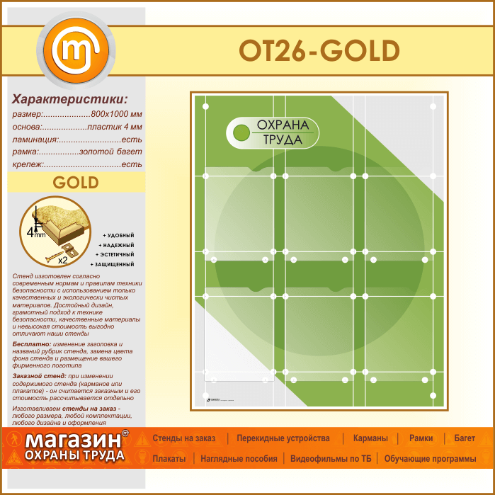 Стенд «Охрана труда» с 6 плоскими карманами (OT-26-GOLD) в Новом Уренгое купить