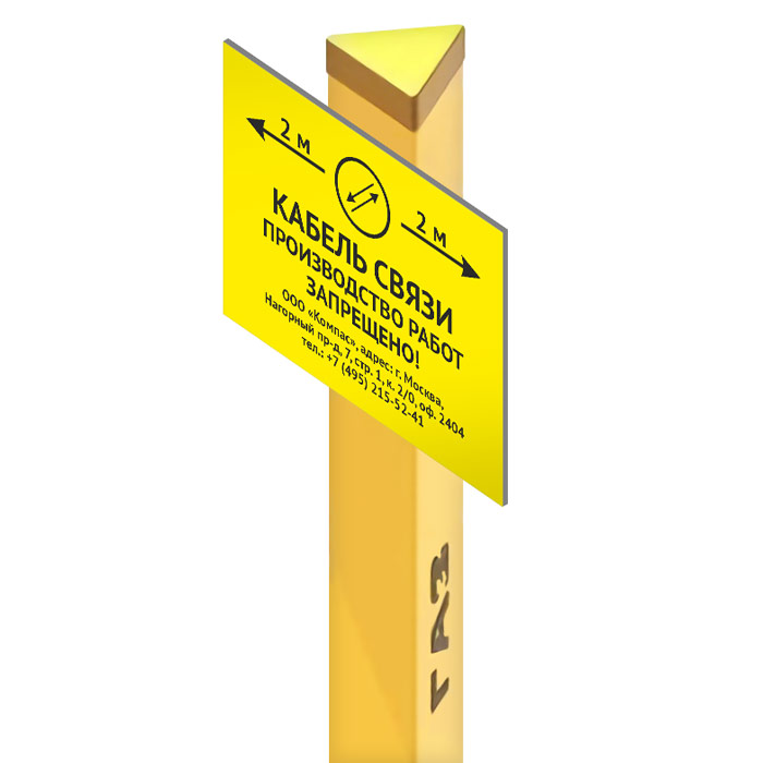 Столбик треугольный желтый h=1800 мм (сторона 100 мм) в Новом Уренгое купить