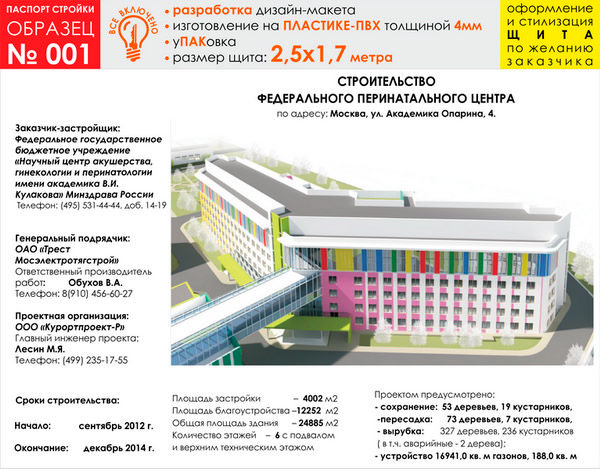 Паспорт стройки, образец № 1 (пластик 4 мм, 2500х1700 cм) в Новом Уренгое купить
