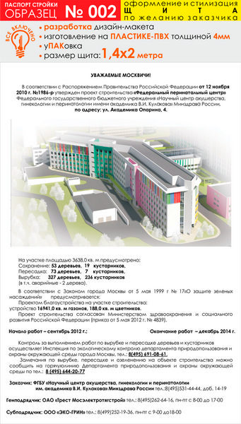 Паспорт стройки, образец № 2 (пластик 4 мм, 1400х2000 cм) в Новом Уренгое купить