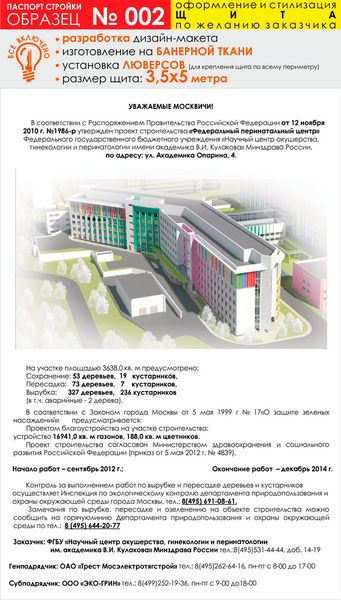 Паспорт стройки, образец № 2 (баннерная ткань, 3500х5000 см) в Новом Уренгое купить