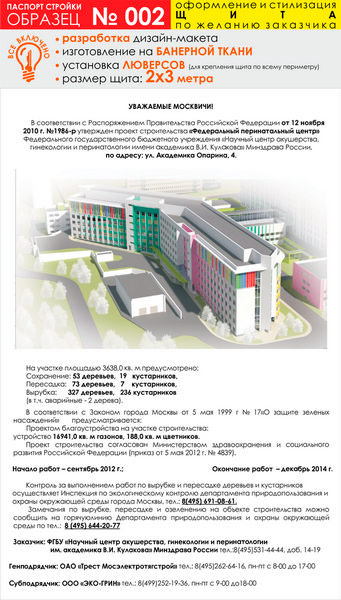 Паспорт стройки, образец № 2 (баннерная ткань, 2000х3000 cм) в Новом Уренгое купить