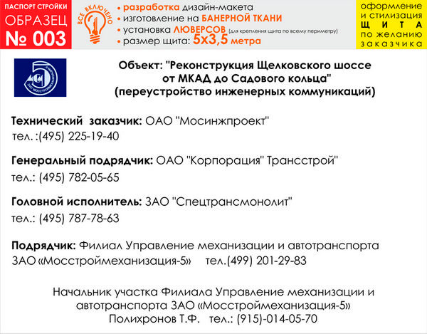 Паспорт стройки, образец № 3 (баннерная ткань, 5000х3500 cм) в Новом Уренгое купить