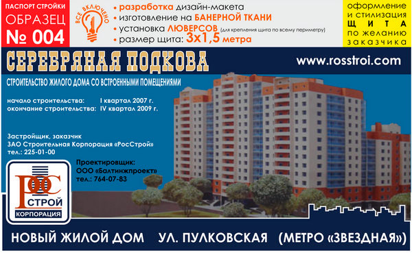 Паспорт стройки, образец № 4 (баннерная ткань, 3000х1500 cм) в Новом Уренгое купить