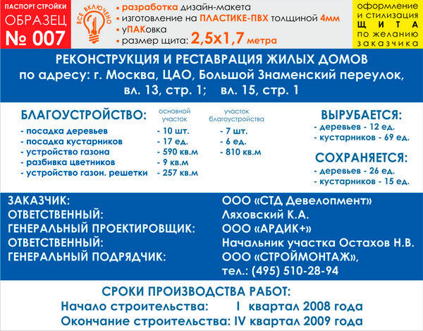 Паспорт стройки, образец № 7 (пластик 4 мм, 2500х1700 cм) в Новом Уренгое купить