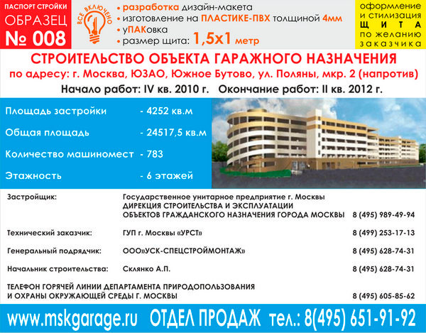 Паспорт стройки, образец № 8 (пластик 4 мм, 1500х1000 cм) в Новом Уренгое купить