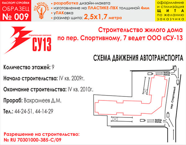 Паспорт стройки, образец № 9 (пластик 4 мм, 2500х1700 cм) в Новом Уренгое купить