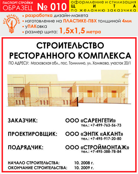 Паспорт стройки, образец № 10 (пластик 4 мм, 1500х1500 cм) в Новом Уренгое купить