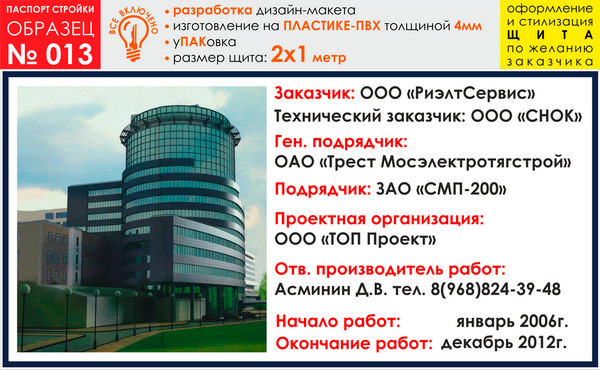 Паспорт стройки, образец № 13 (пластик 4 мм, 2000х1000 cм) в Новом Уренгое купить