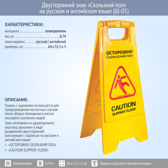 Знак «Скользкий пол» на русском и английском языке (Ш-05) в Новом Уренгое купить
