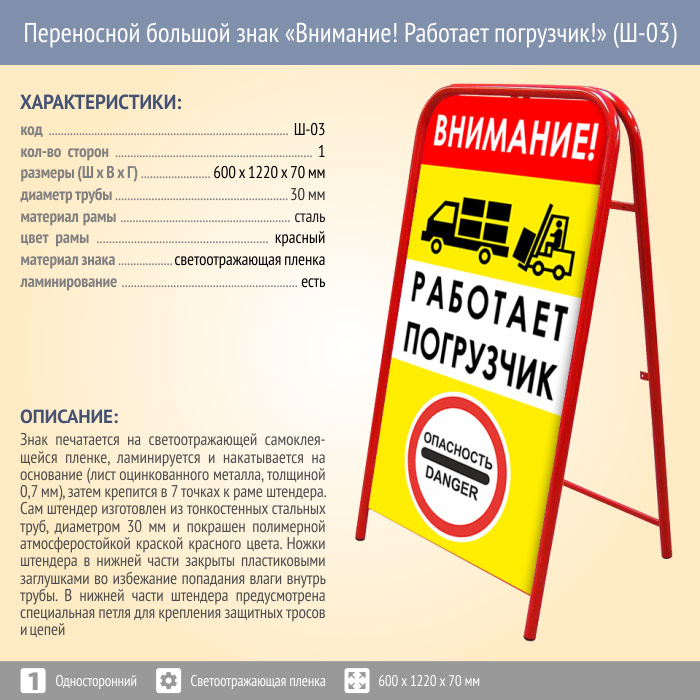 Переносной большой знак «Внимание! Работает погрузчик!» (Ш-03, односторонний, светоотражающая пленка) в Новом Уренгое купить