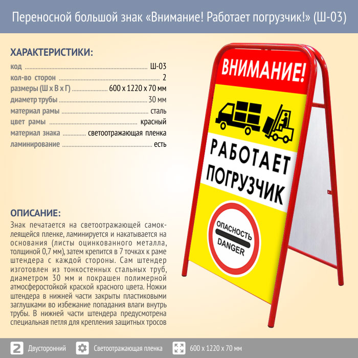 Переносной большой знак «Внимание! Работает погрузчик!» (Ш-03, двусторонний, светоотражающая пленка) в Новом Уренгое купить