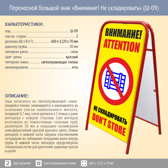 Переносной большой знак «Внимание! Не складировать» (Ш-09, двусторонний, светоотражающая пленка) в Новом Уренгое купить