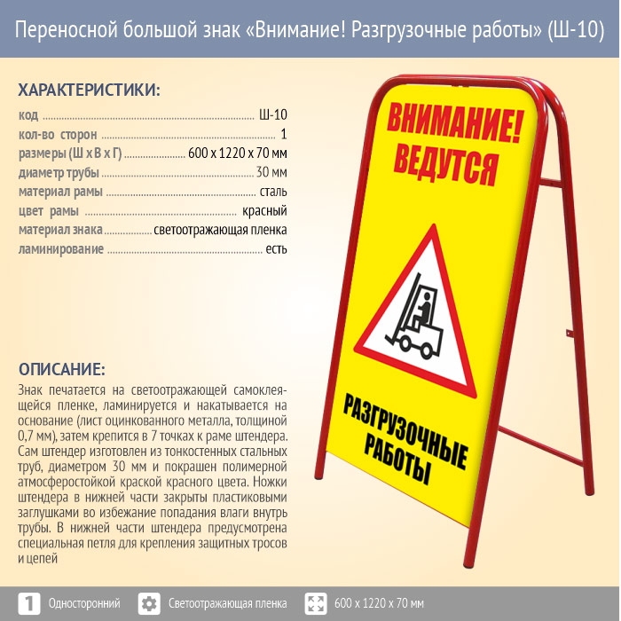 Переносной большой знак «Внимание! Разгрузочные работы» (Ш-10, односторонний, светоотражающая пленка) в Новом Уренгое купить