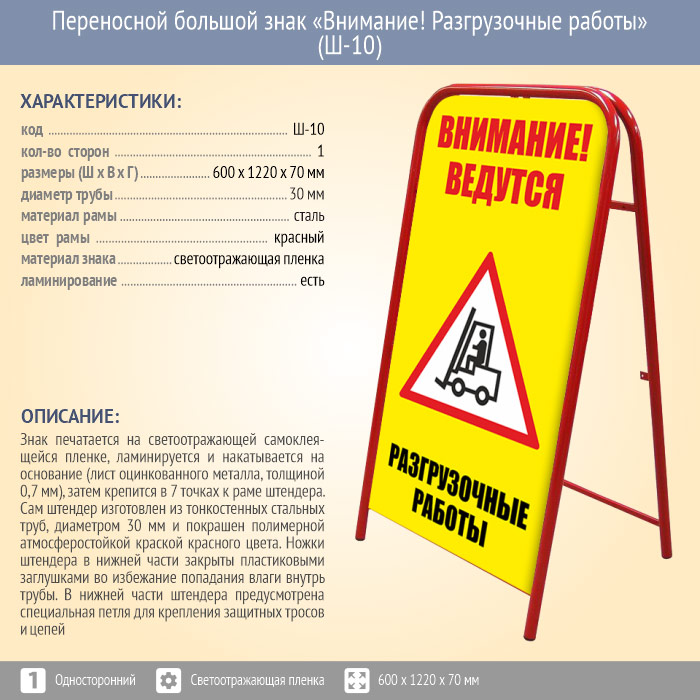 Переносной большой знак «Внимание! Разгрузочные работы» (Ш-10, двусторонний, светоотражающая пленка) в Новом Уренгое купить