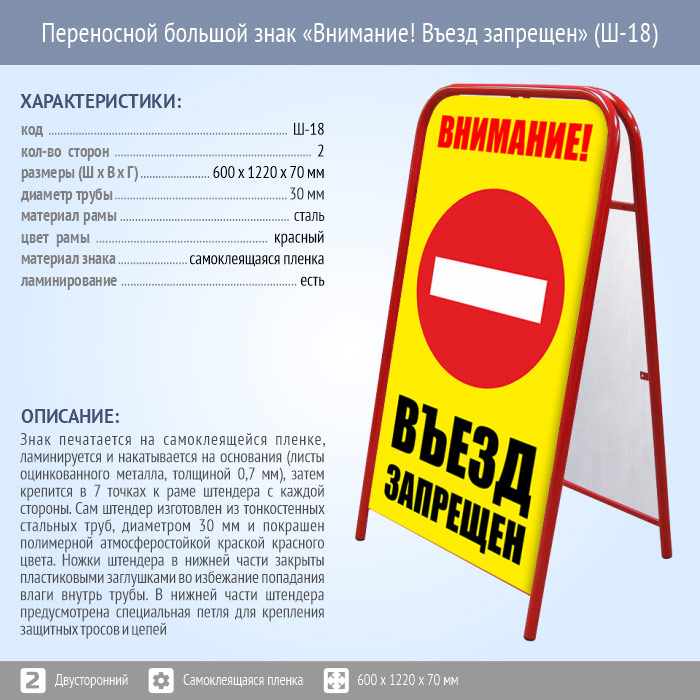 Переносной большой знак «Внимание! Въезд запрещен» (Ш-18, двусторонний, самоклеящаяся пленка) в Новом Уренгое купить