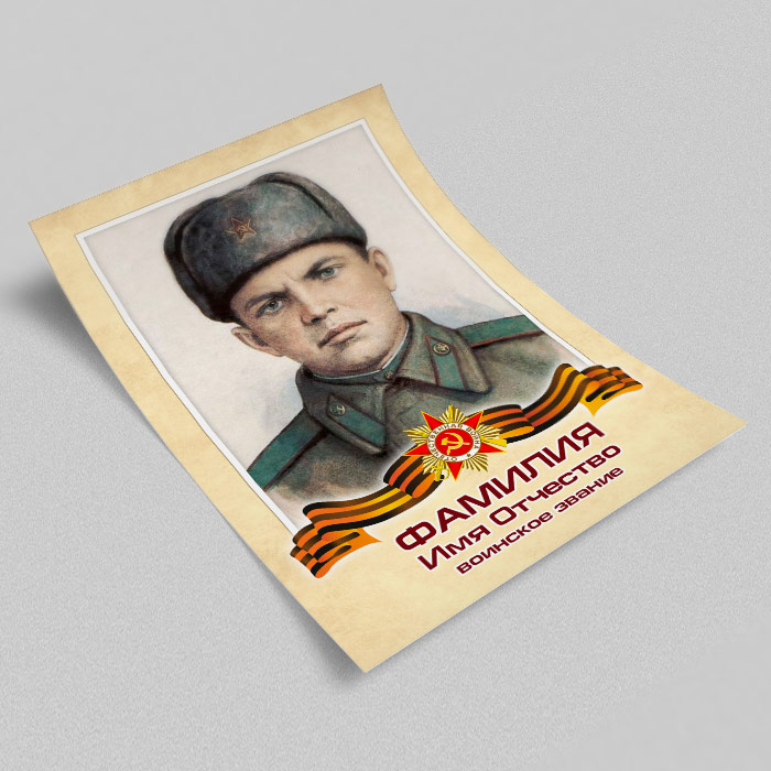 Плакаты формата А4 на ламинированной бумаге можут служить дополнением к серии стендов «Бессмертный полк», но также может использоваться и самостоятельно. Плакаты на 4 мм пластике в алюминиевой рамке цвета матового золота используются независимо от стендов. Для создания макета нам понадобится: