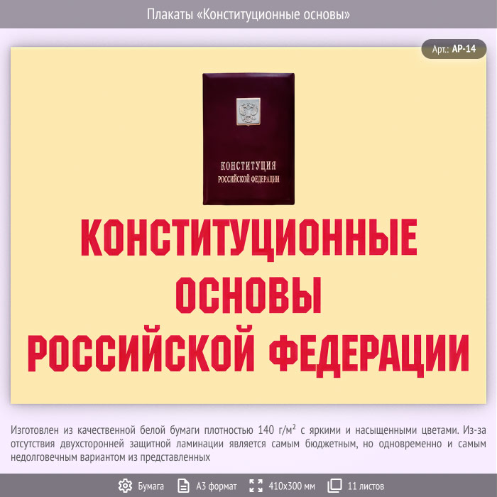 Плакаты «Конституционные основы» (АР-14, бумага, А3, 11 листов) в Новом Уренгое купить