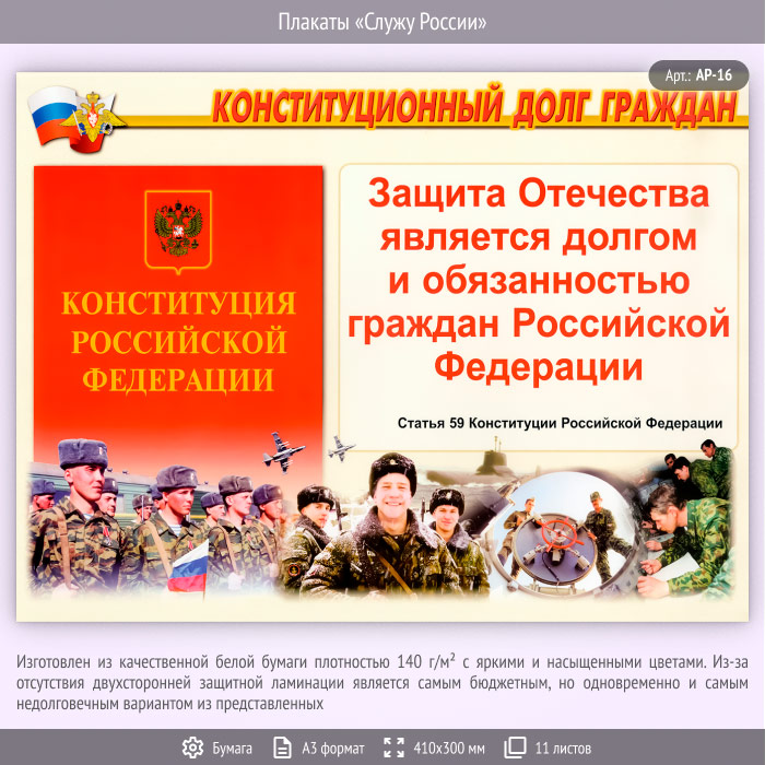 Плакаты «Служу России» (АР-16, бумага, А3, 11 листов) в Новом Уренгое купить