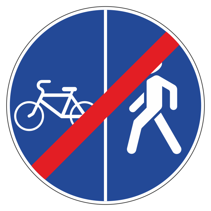 Дорожный знак 4.5.6 «Конец пешеходной и велосипедной дорожки с разделением движения» (металл 0,8 мм, II типоразмер: диаметр 700 мм, С/О пленка: тип А инженерная) в Новом Уренгое купить