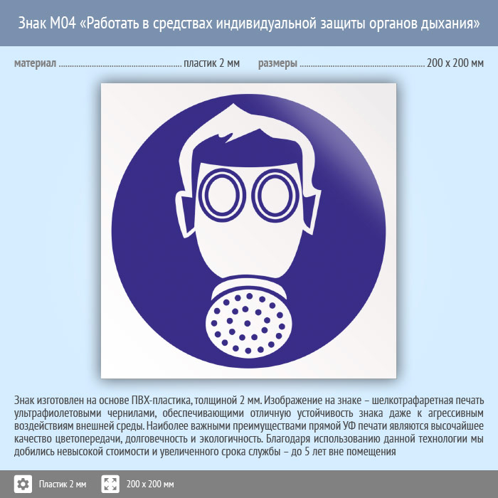 Знак M04 «Работать в средствах индивидуальной защиты органов дыхания» (пластик, 200х200 мм) в Новом Уренгое купить
