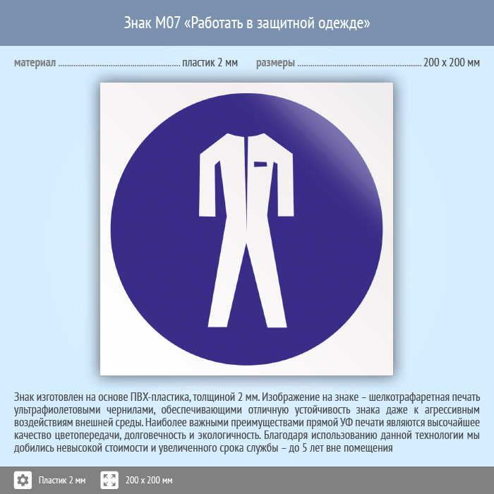Знак M07 «Работать в защитной одежде» (пластик, 200х200 мм) в Новом Уренгое купить