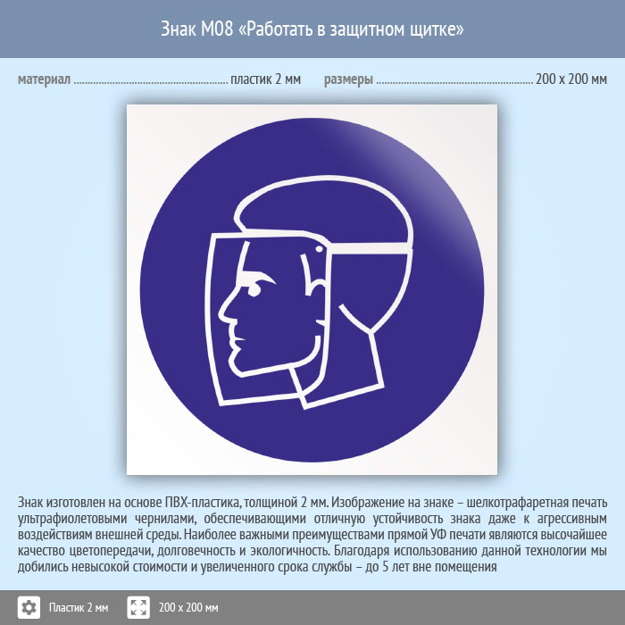 Знак M08 «Работать в защитном щитке» (пластик, 200х200 мм) в Новом Уренгое купить