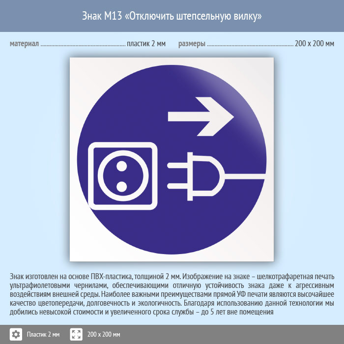 Знак M13 «Отключить штепсельную вилку» (пластик, 200х200 мм) в Новом Уренгое купить
