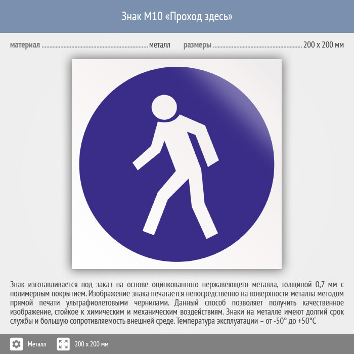 Знак M10 «Проход здесь» (металл, 200х200 мм) в Новом Уренгое купить