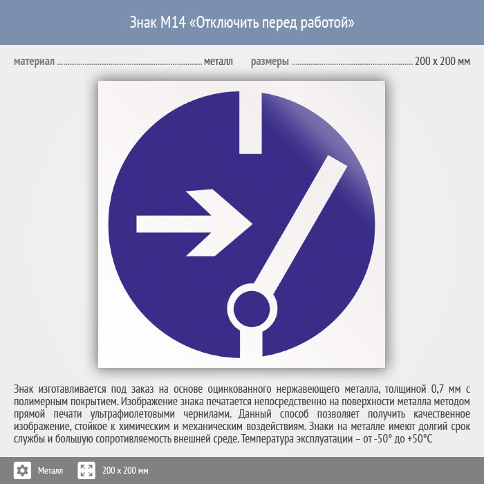 Знак M14 «Отключить перед работой» (металл, 200х200 мм) в Новом Уренгое купить