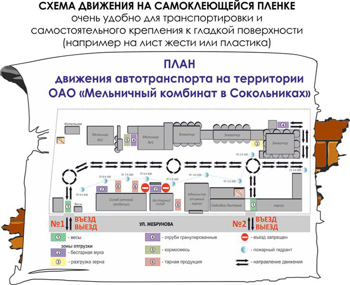 Схема движения автотранспорта (2200х1500 мм, самоклеящаяся плёнка) в Новом Уренгое купить