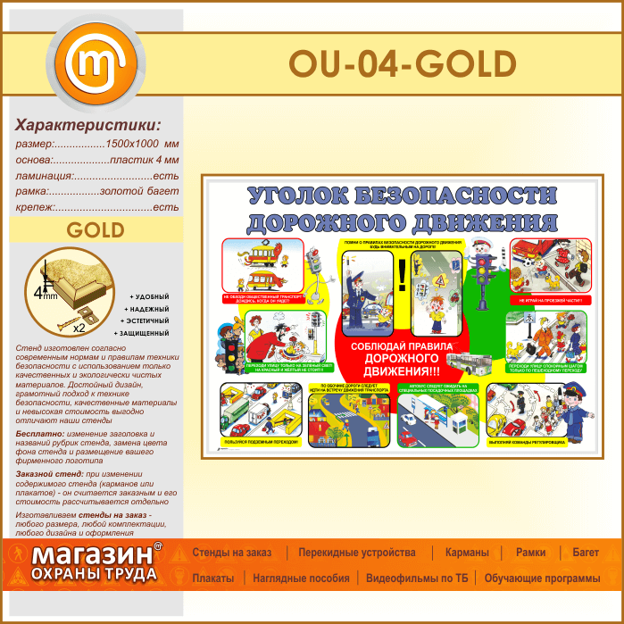 Стенд «Уголок безопасности дорожного движения» (OU-04-GOLD) в Новом Уренгое купить