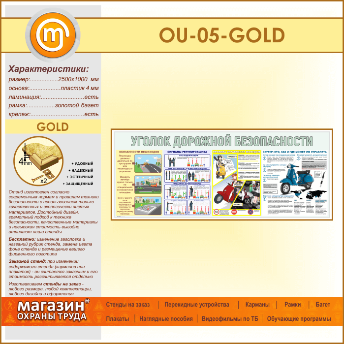 Стенд «Уголок дорожной безопасности» (OU-05-GOLD) в Новом Уренгое купить