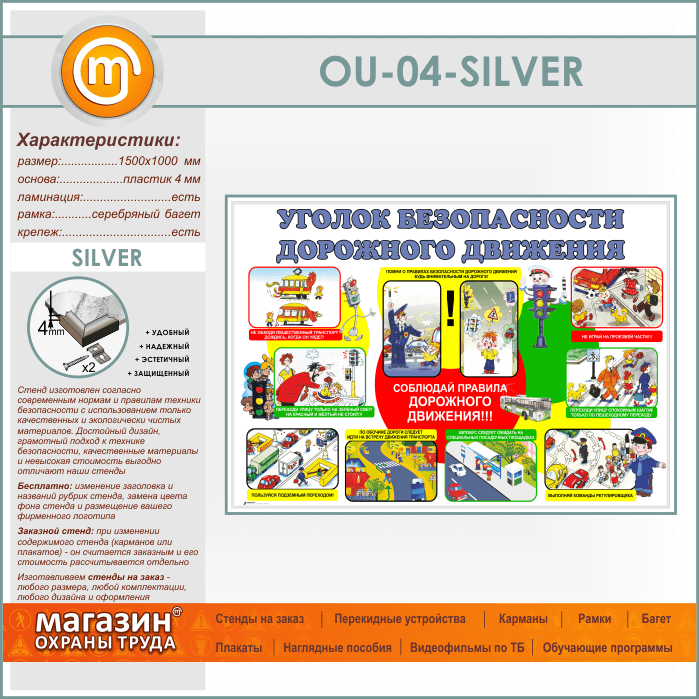 Стенд «Уголок безопасности дорожного движения» (OU-04-SILVER) в Новом Уренгое купить