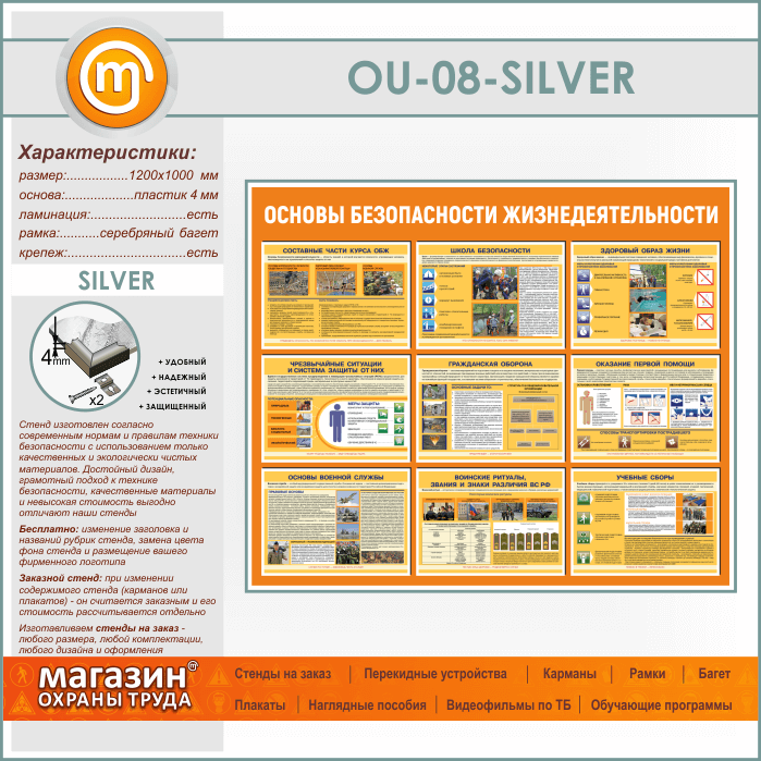 Стенд «Основы безопасности жизнедеятельности» (OU-08-SILVER) в Новом Уренгое купить