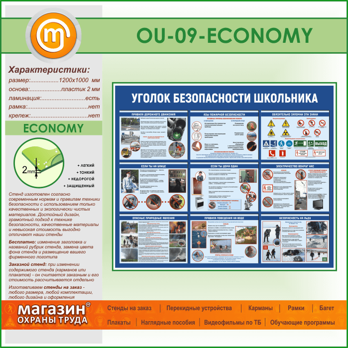 Стенд «Уголок безопасности школьника» (OU-09-ECONOMY) в Новом Уренгое купить