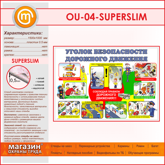 Стенд «Уголок безопасности дорожного движения» (OU-04-SUPERSLIM) в Новом Уренгое купить