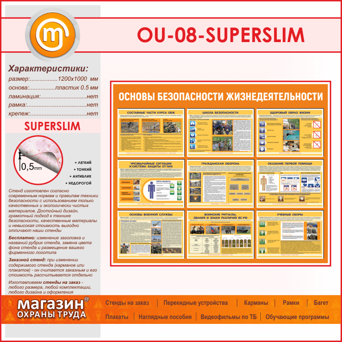 Стенд «Основы безопасности жизнедеятельности» (OU-08-SUPERSLIM) в Новом Уренгое купить