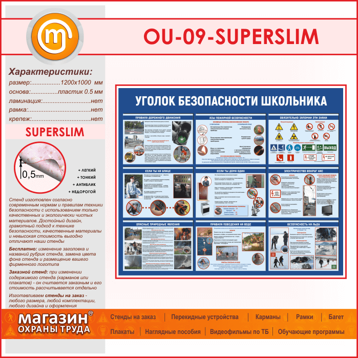 Стенд «Уголок безопасности школьника» (OU-09-SUPERSLIM) в Новом Уренгое купить