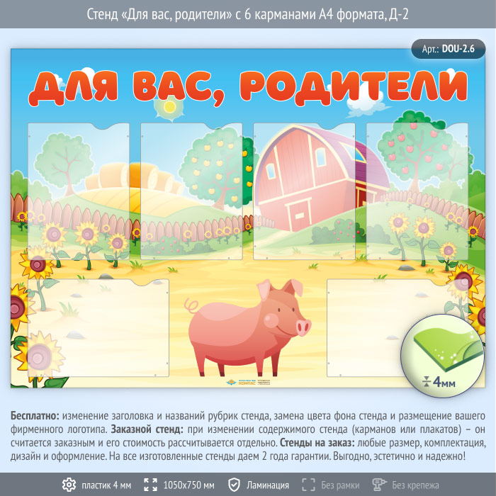Стенд «Для вас, родители» с 6 карманами А4 формата (DOU-2.6) в Новом Уренгое купить