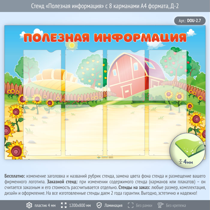 Стенд «Полезная информация» с 8 карманами А4 формата (DOU-2.7) в Новом Уренгое купить