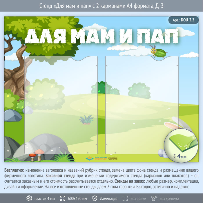 Стенд «Для мам и пап» с 2 карманами А4 формата (DOU-3.2) в Новом Уренгое купить