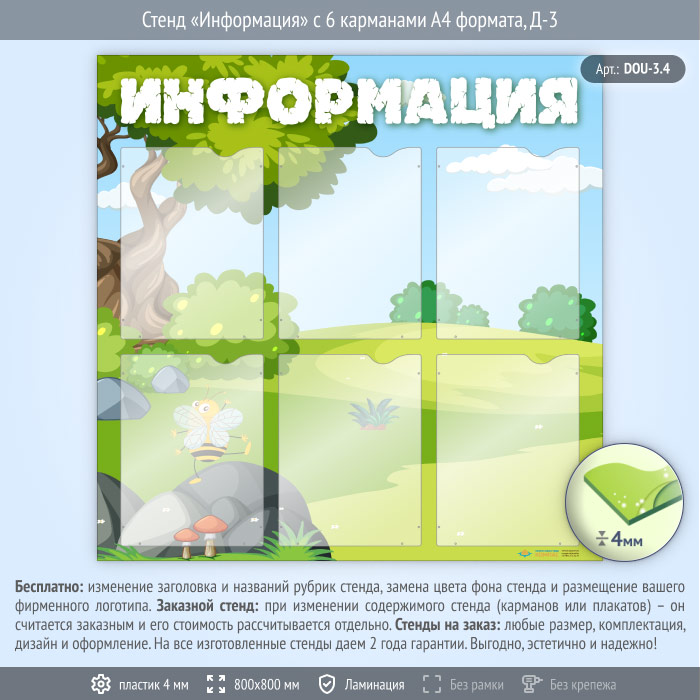 Стенд «Информация» с 6 карманами А4 формата (DOU-3.4) в Новом Уренгое купить