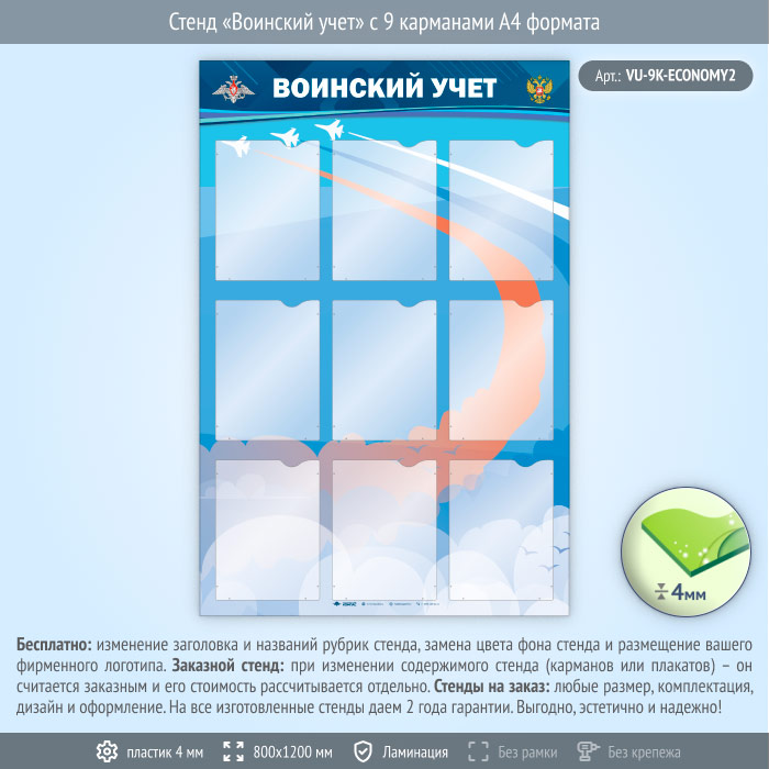 Стенд «Воинский учет» с 9 карманами А4 формата (VU-9K-ECONOMY2) в Новом Уренгое купить